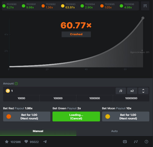 - Gameplay progress. A multiplier, starting at 1.00x at the beginning of the match, rapidly takes off. The multiplier defines the proportion you can get paid relative to your bet.