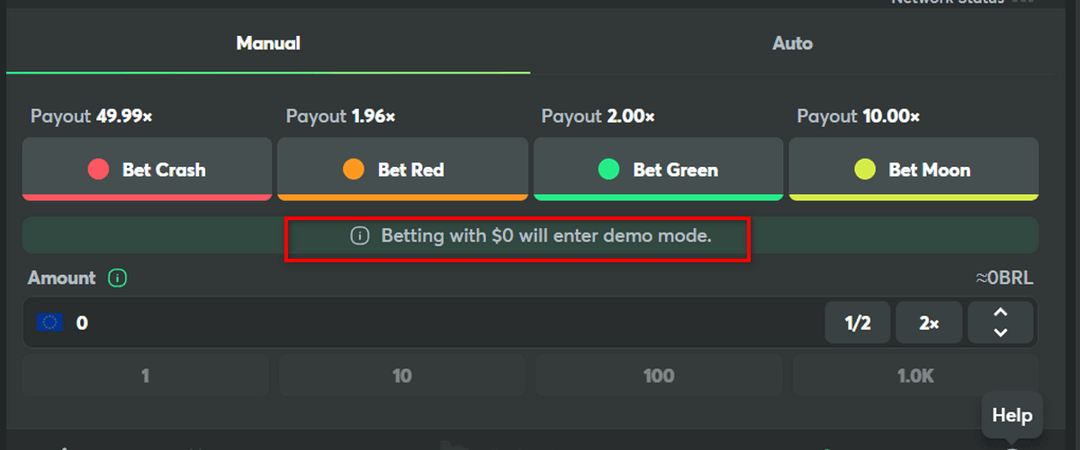 - To access Demo Mode—which lets you play with Demo credits rather than real money—flip this switch.