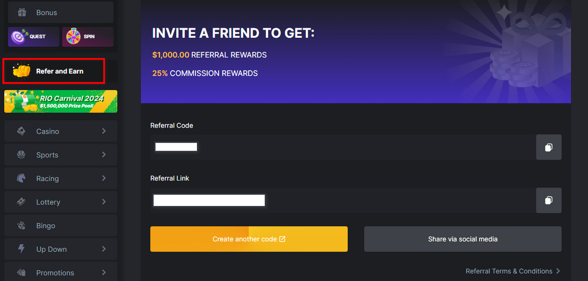 3. Referral code acquisition. Within this segment, your unique referral code or a link materializes. Copy this datum for dissemination among peers.