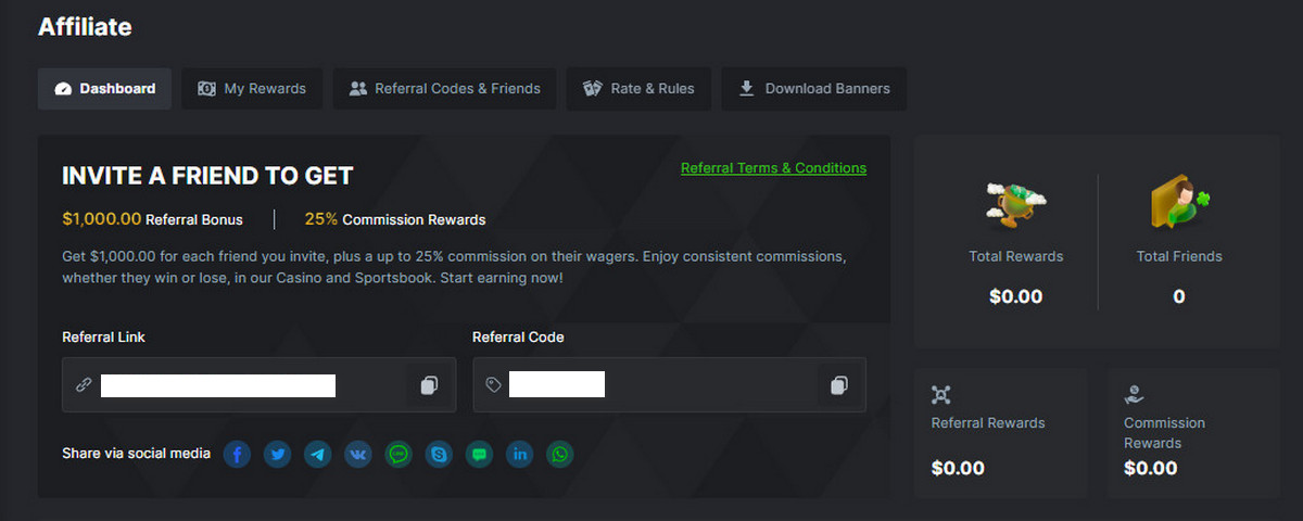 • Earnings compendium. A depiction of your cumulative earnings from the referral endeavor is provided here. It encapsulates commissions emanating from their betting endeavors alongside any specific bonuses or rewards tied to their progress.
