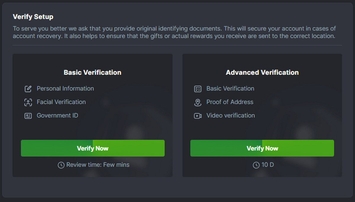 - Legal na pagsunod. Ang mga online gaming site ay kinakailangang umamin sa mga regulasyon ng Anti-Money Laundering (AML). Dahil dito, ang mga pag-verify ng KYC ay isang kahilingan.