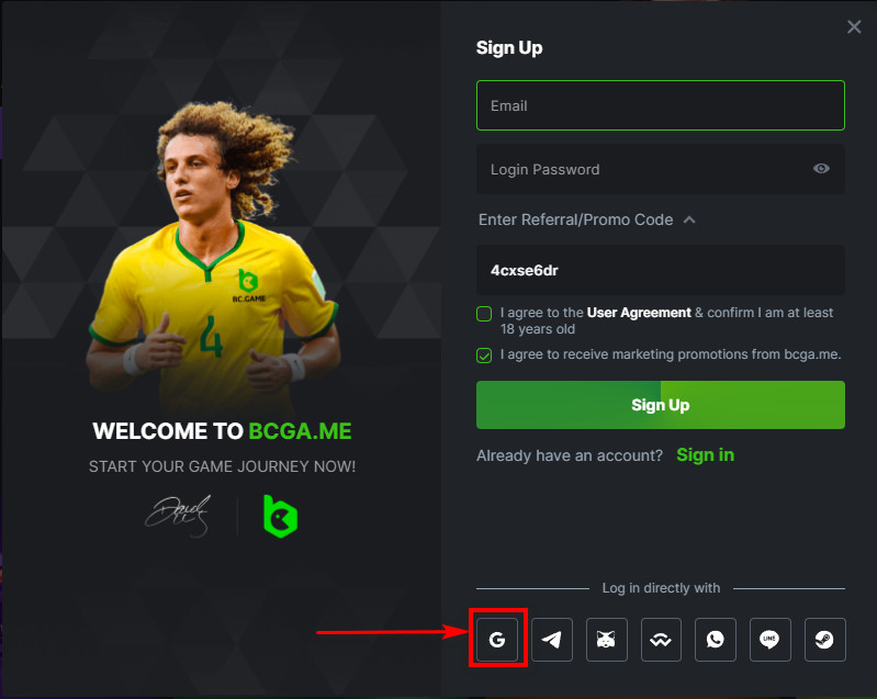 - Pagpili ng iyong registration avenue. Ang BC.Game ay nagpapalawak ng maraming mga landas sa pagpaparehistro, kabilang ang email, mobile number, o isang hanay ng mga platform ng social media, bawat isa ay idinisenyo para sa direktang pagpapatupad.